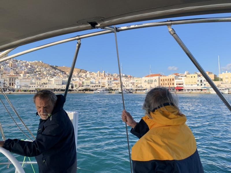 Ein Segeltörn in den Kykladen 2021mit einer vierköpfige saarländische Crew aus Mitgliedern und Freunden der DGG-Saar-eV. Mannschaft der Segelcrew von links nach rechts: Hans (Skipper), Frank, Patrick, Ingolf (Co-Skipper) die gecharterte Yacht: Jeanneau Sun Odyssey 509 Namens "Achilles" Kap Sunion, Poseidon-Tempel Navigation Auf dem Weg nach Kithnos Ormos Ioannis in Kithnos Auf dem Weg nach Syros Syros - zu Besuch bei der Vorsitzenden der Deutsch-Griechischen Gesellschaft Saar e.V. Vorbei an der "Verbannungs-Insel" Giaros Serifos Auf dem Rückweg Ormos Kolona, Angali Phikiada in Kithnos Fotos von den Crewmitgliedern Impressum Zuletzt aktualisiert 02/2026 Webmaster |